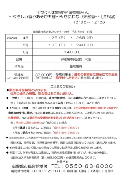 沼津御用邸東付属邸の講座は人気のためなかなかご予約の確保が難しい場合があります。(特に週末)今現在予約が空いている部分のみ以下に記載しました。気になる~って方はまずはご連絡くださいね。